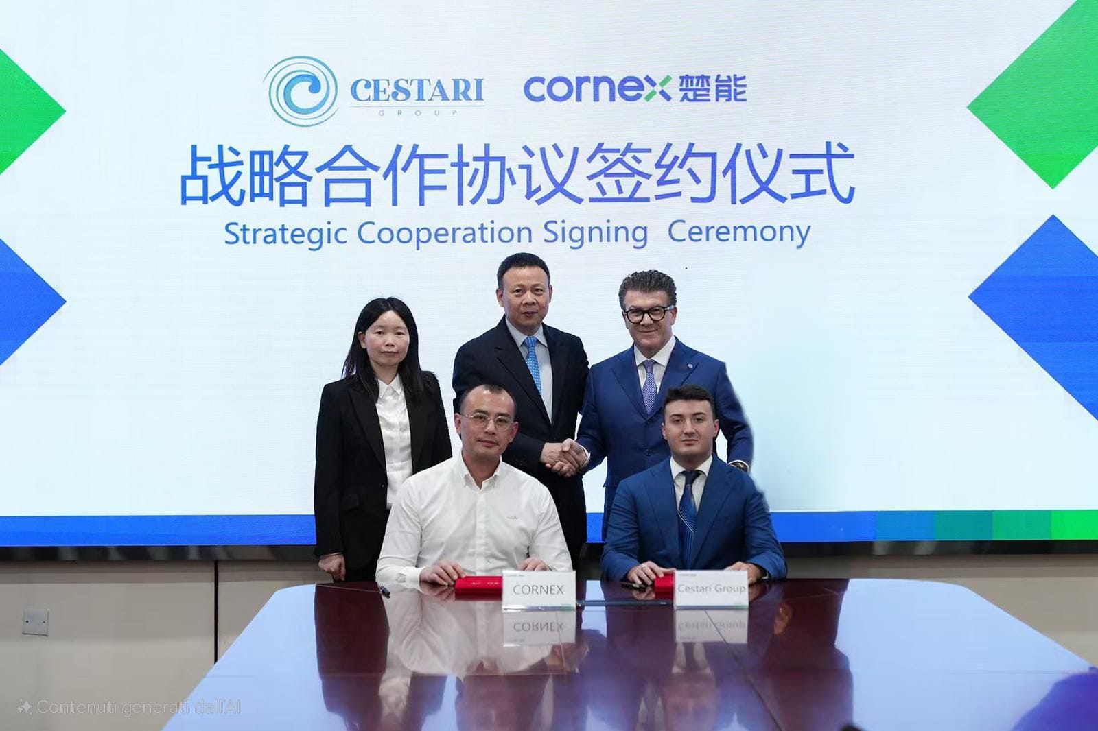 In rappresentanza delle rispettive aziende, hanno firmato Chen Qun, vicepresidente del marketing globale di CORNEX, e Giovanni Cestari amministratore delegato del Gruppo Cestari.