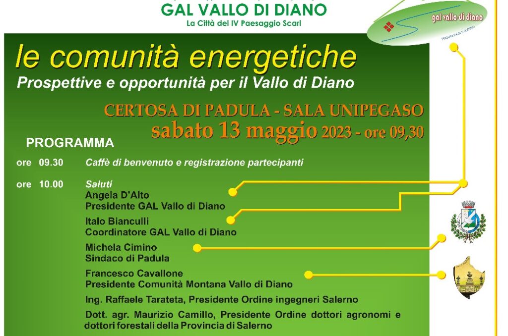 Programmi, progetti e proposte del Gruppo Cestari per la realizzazione di comunità energetiche rinnovabili al Sud saranno presentati sabato 13 maggio in un incontro presso la Certosa di Padula sul tema “Comunità energetiche – Prospettive per il vallo di Diano”.